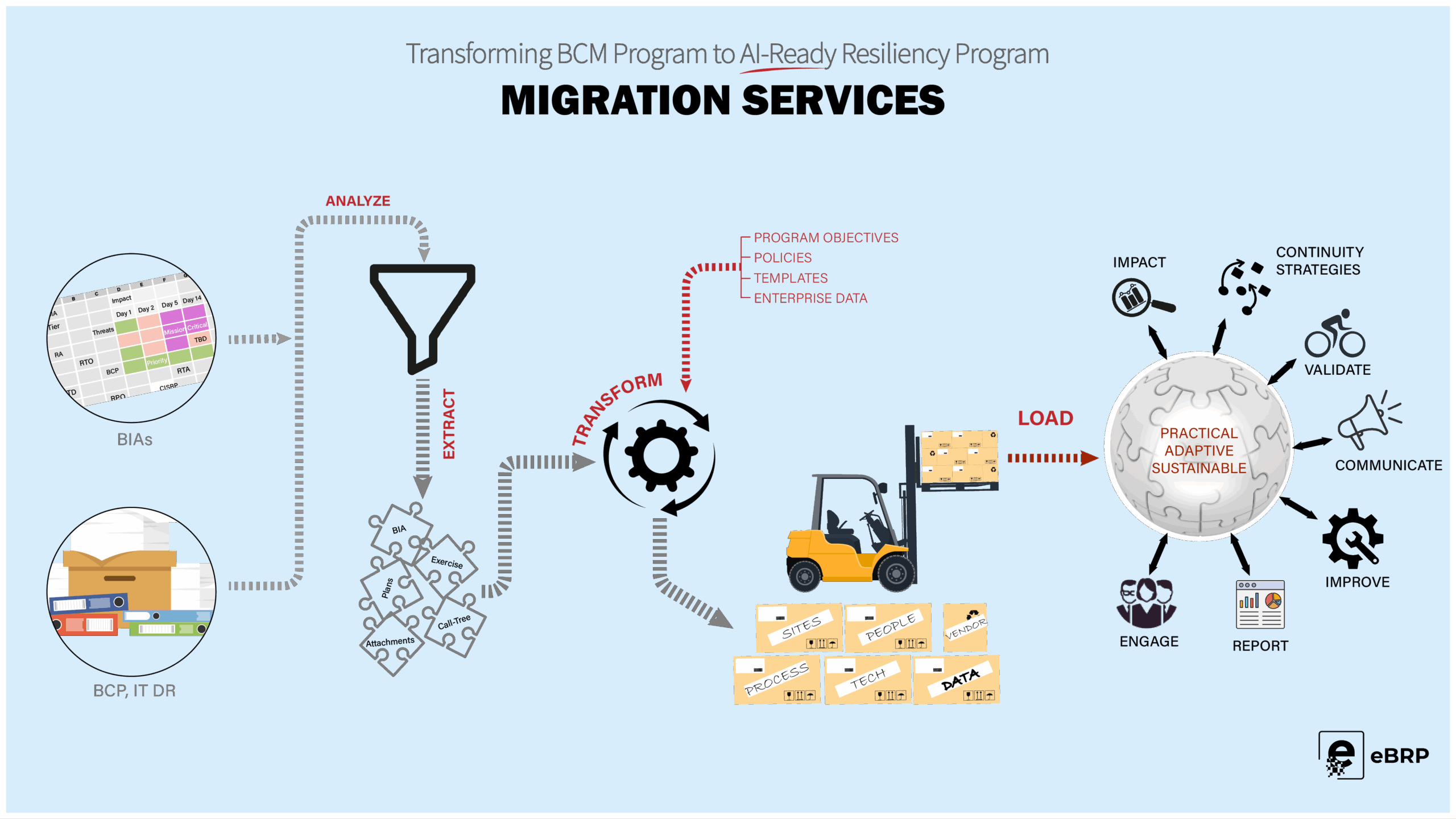 - Load: Populate the eBRP Suite with plan components, task logic, and user roles